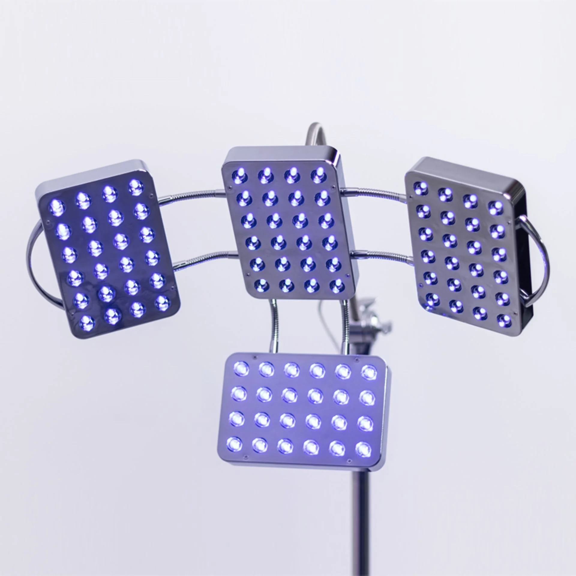 Calming Light ist ein flächengroßes Licht mit 72 LEDs, das eine spezielle Wellenlänge mit antibakteriellen Eigenschaften ausstrahlt. Seine drei Platten garantieren eine intensive, gleichmäßige und gezielte Lichtbehandlung. UV-Licht kann zu vorzeitiger Hautalterung und Überkeratinisierung (z. B. durch Sonnenbrand) führen. Beruhigendes Licht hat keinen dieser Nachteile.